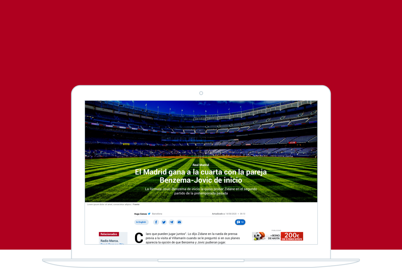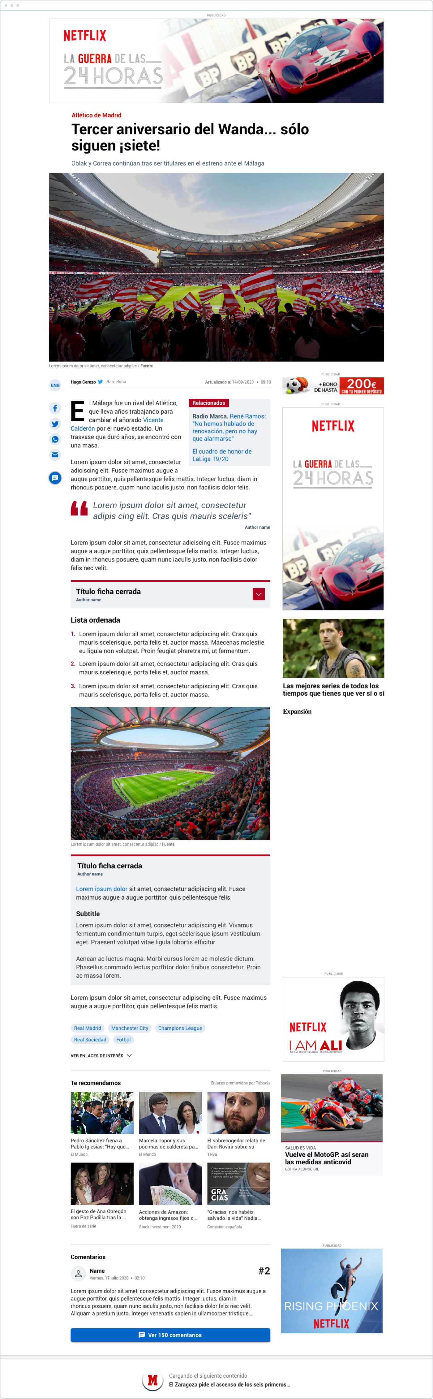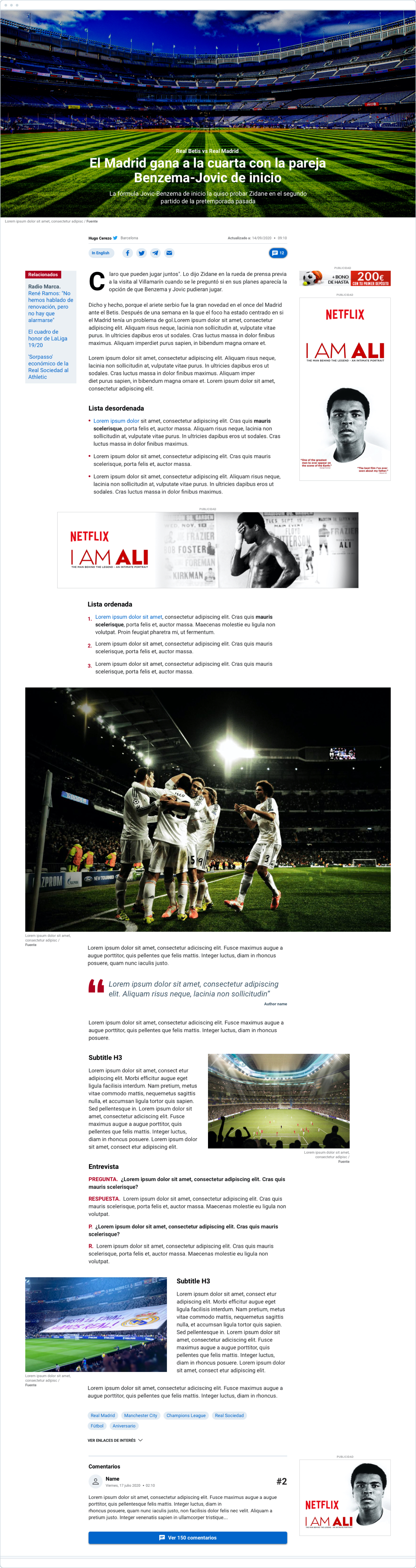 Es la noticia predeterminada utilizada por la redacción en el portal de Marca.com. A continuación, se muestra el resultado de la noticia con todos los elementos que la componen: