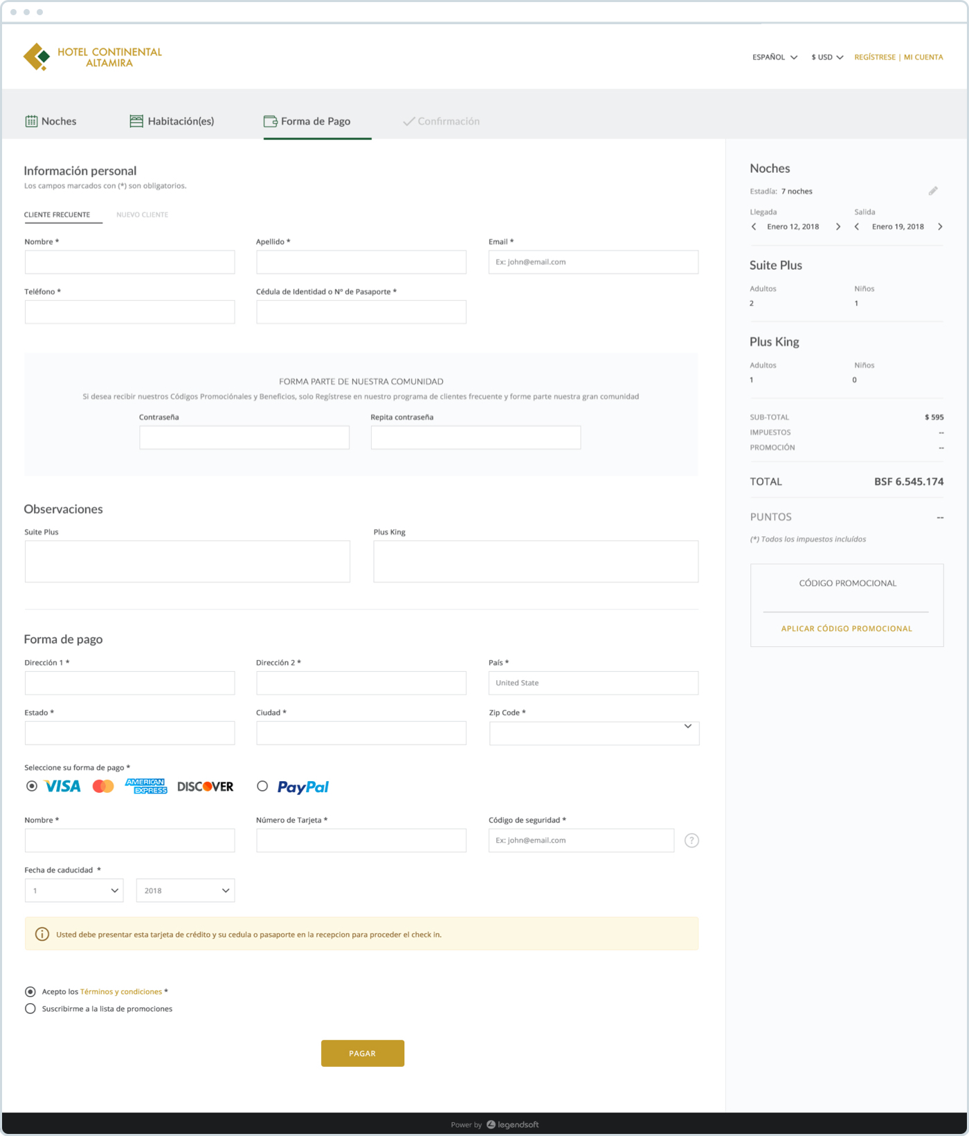 The Venezuelan Hotel Continental Altamira has identified the need to improve both the visual design and usability of its website and booking system. These improvements include: